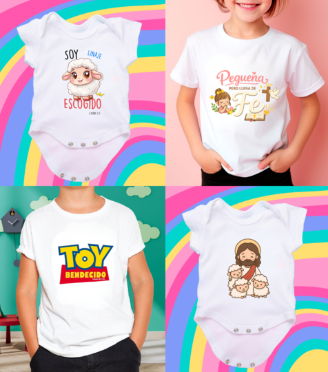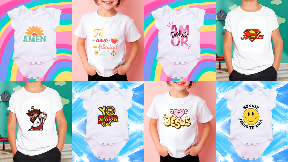 - Agregá a tu emprendimiento diseños infantiles llenos de fe, dulzura y mensajes que inspiran desde pequeños.